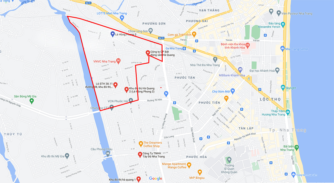 - Phía Đông giáp đường Lê Hồng Phong (gần Ga Nha Trang).